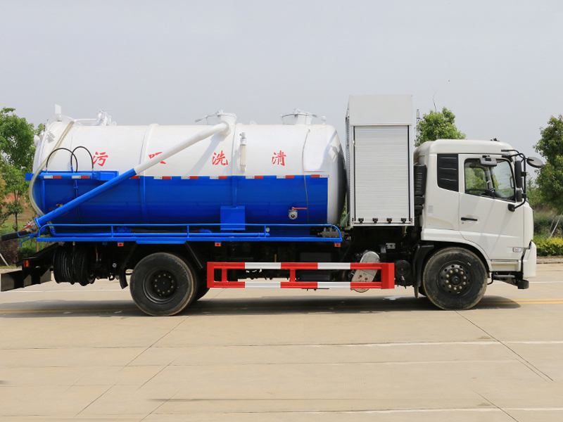 隨底盤選裝駕駛室.選用4700mm軸距.該車裝有污水罐和清水罐,用于下水道抽排污及疏通;罐體外形尺寸(直段長×直徑)(mm):5200×1850,其中罐體前段為清水罐(直段長1900mm).清水罐容積:5.0立方米,介質(zhì):;污水罐體容積:8.8立方米,介質(zhì):液態(tài)污物.清水罐和吸污罐為兩個(gè)獨(dú)立罐體,清洗功能時(shí)用清水罐,吸污功能時(shí)用污水罐,清洗吸污兩種功能不能同時(shí)使用,且不能同時(shí)滿載..可選裝綠化水炮 前沖 后灑 側(cè)噴.