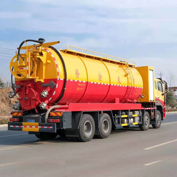 該車(chē)專(zhuān)用裝置主要為污水罐和清水罐,用于下水道吸污及疏通。隨底盤(pán)選裝駕駛室;罐體尺寸(直段長(zhǎng)×直徑)(mm):7100×2350,其中罐體前端為清水罐(直段長(zhǎng)3150mm);后端為污水罐(直段長(zhǎng)3950mm)。兩罐獨(dú)立,且不能同時(shí)滿(mǎn)載。清洗功能時(shí)用清水罐,吸污功能時(shí)用污水罐。污水罐有效容積14.57立方米,介質(zhì):液態(tài)污物,密度:800千克/立方米;清水罐有效容積11.66立方米,介質(zhì):,密度:1000千克/立方米。采用軸距(mm):1800+4600+1350,1800+4575+1400;側(cè)/后防護(hù)材料均為:Q235碳鋼,連接方式均為:螺栓連接,后部防護(hù)截面尺寸(mm):200×60,后部防護(hù)離地高度(mm):480;ABS系統(tǒng)型號(hào)為446 004 6300,生產(chǎn)企業(yè)為威伯科汽車(chē)控制系統(tǒng)(中國(guó))有限公司。選裝EBS,EBS系統(tǒng)控制器生產(chǎn)企業(yè):威伯科汽車(chē)控制系統(tǒng)(中國(guó))有限公司,型號(hào):EBS3。卸料方式為后卸式;選裝罐體頂部護(hù)欄樣式,選裝側(cè)面清洗管,選裝后罐口液壓開(kāi)啟樣式,選裝后部閥門(mén),選裝后部清洗管卷盤(pán)樣式 清水罐和污水罐為兩個(gè)獨(dú)立罐體,清洗功能時(shí)用前部清水罐吸污功能時(shí)用后部污水罐,兩種功能不同時(shí)使用.可選裝綠化水炮 前沖 后灑 側(cè)噴.