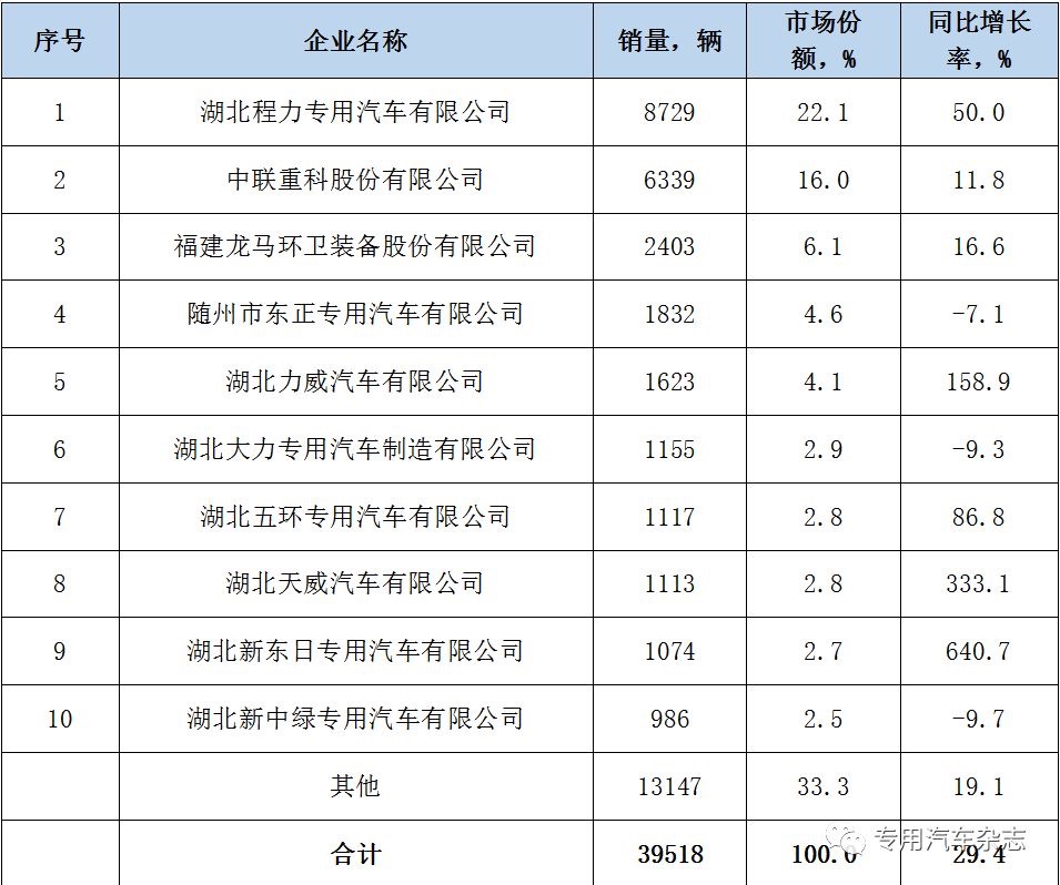 今年前8個月環(huán)衛(wèi)車銷量同比上升東正汽車榜上前4