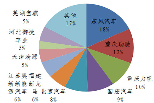 預(yù)計(jì) 8 月份新能源專用車有望進(jìn)入補(bǔ)貼目錄,產(chǎn)量爆發(fā)在即。5 月 24 日工信部公布《道路機(jī)動(dòng)車輛生產(chǎn)企業(yè)及產(chǎn)品公告》(第 285 批),公告包括了 218 款新能源車。此次車型公告中最受關(guān)注的是 103 款電動(dòng)專用車,占新能源車型總數(shù)比為 47%,而電動(dòng)專用車中,電動(dòng)物流車占比 80%以上。2016 年 6 月 23 日工信部公示《道路機(jī)動(dòng)車輛生產(chǎn)企業(yè)及產(chǎn)品公告》(第 286 批),包括了 396 款新能源車型,其中新能源專用車155 款。因此,預(yù)計(jì) 8、9 月份第四批《新能源汽車推廣應(yīng)用推薦車型目錄》將出現(xiàn)新能源專用車車型。從 2016 年年初至今,多家電動(dòng)物流車公司訂單數(shù)已經(jīng)超過 10.32萬輛,一旦新能源物流車進(jìn)入補(bǔ)貼目錄,電動(dòng)物流車將爆發(fā)增長。其中,東風(fēng)汽車在純電動(dòng)汽車車型申報(bào)、市場占有率及訂單數(shù)量均遙遙領(lǐng)先。