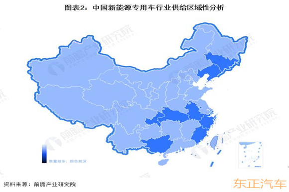 中國(guó)新能源專用車行業(yè)具有明顯的區(qū)域性。在供給方面,新能源專用車制造企業(yè)主要集中在廣西、福建等沿海地區(qū),供給區(qū)域性明顯;在需求方面,新能源專用車制造企業(yè)需求主要集中在東部地區(qū)與中部地區(qū)并逐漸向全國(guó)分散。