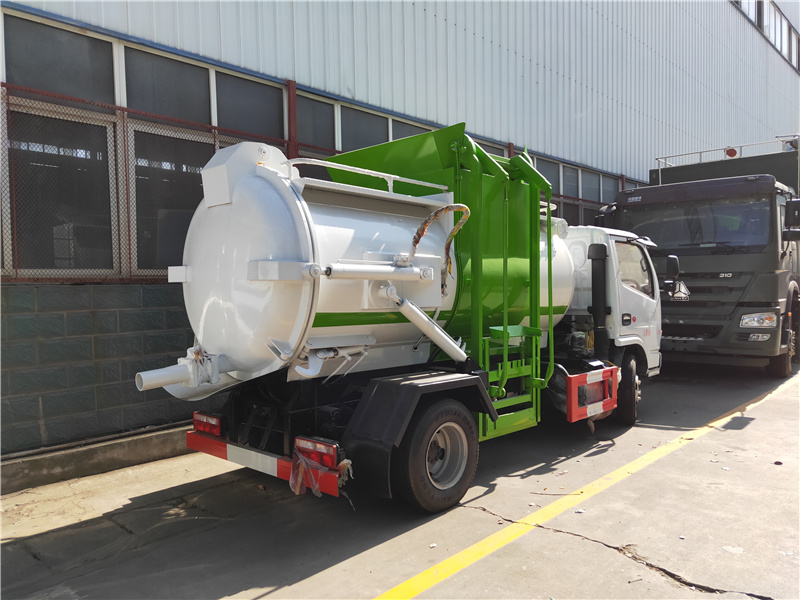 方罐式餐廚垃圾車:弧形廂體,箱體內(nèi)可實(shí)現(xiàn)固液分離,推鏟卸料,后蓋液壓**開啟/鎖緊(帶耐磨橡膠密封條密封-后門關(guān)閉后滴水不漏),后門液壓鎖緊防誤操作功能,掛桶式提升機(jī),可配合120升、240升標(biāo)準(zhǔn)垃圾桶使用,清洗裝置(帶水箱、液壓馬達(dá)帶動(dòng)高壓泵)。